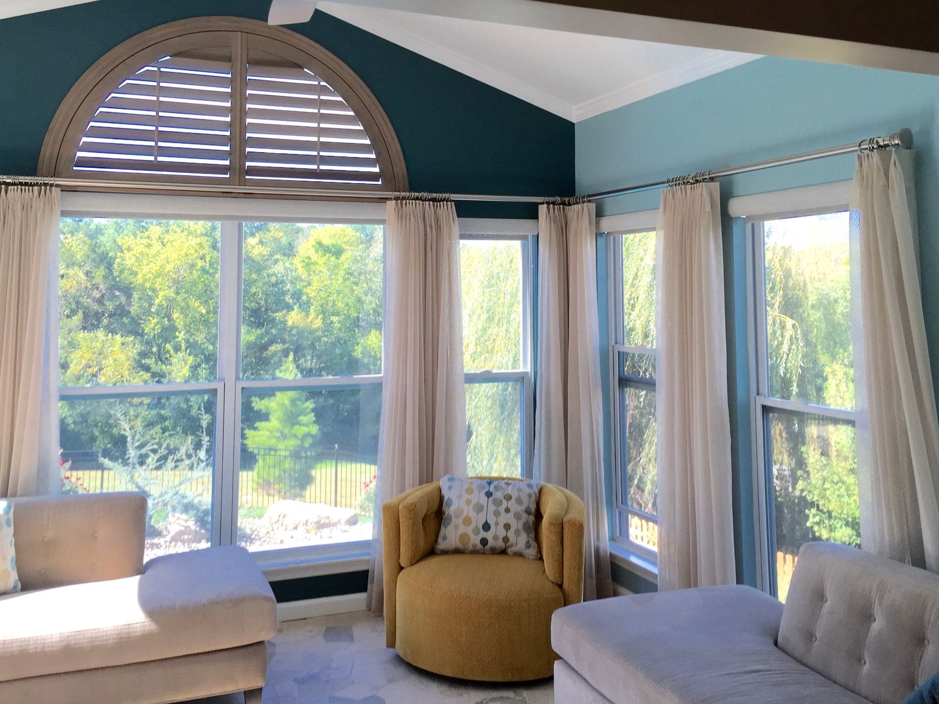 Custom shutters or shades can follow the arch exactly, providing privacy and light control. If you prefer a softer look, draperies above the window can frame the arch beautifully.